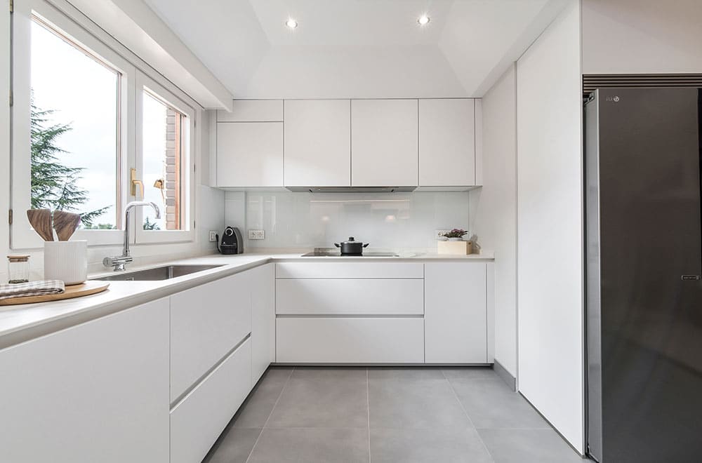 Las cocinas en L, se caracterizan por tener una disposición muy práctica que permite generar dos ejes cartesianos donde es mucho más fácil determinar las zonas de uso de la cocina.