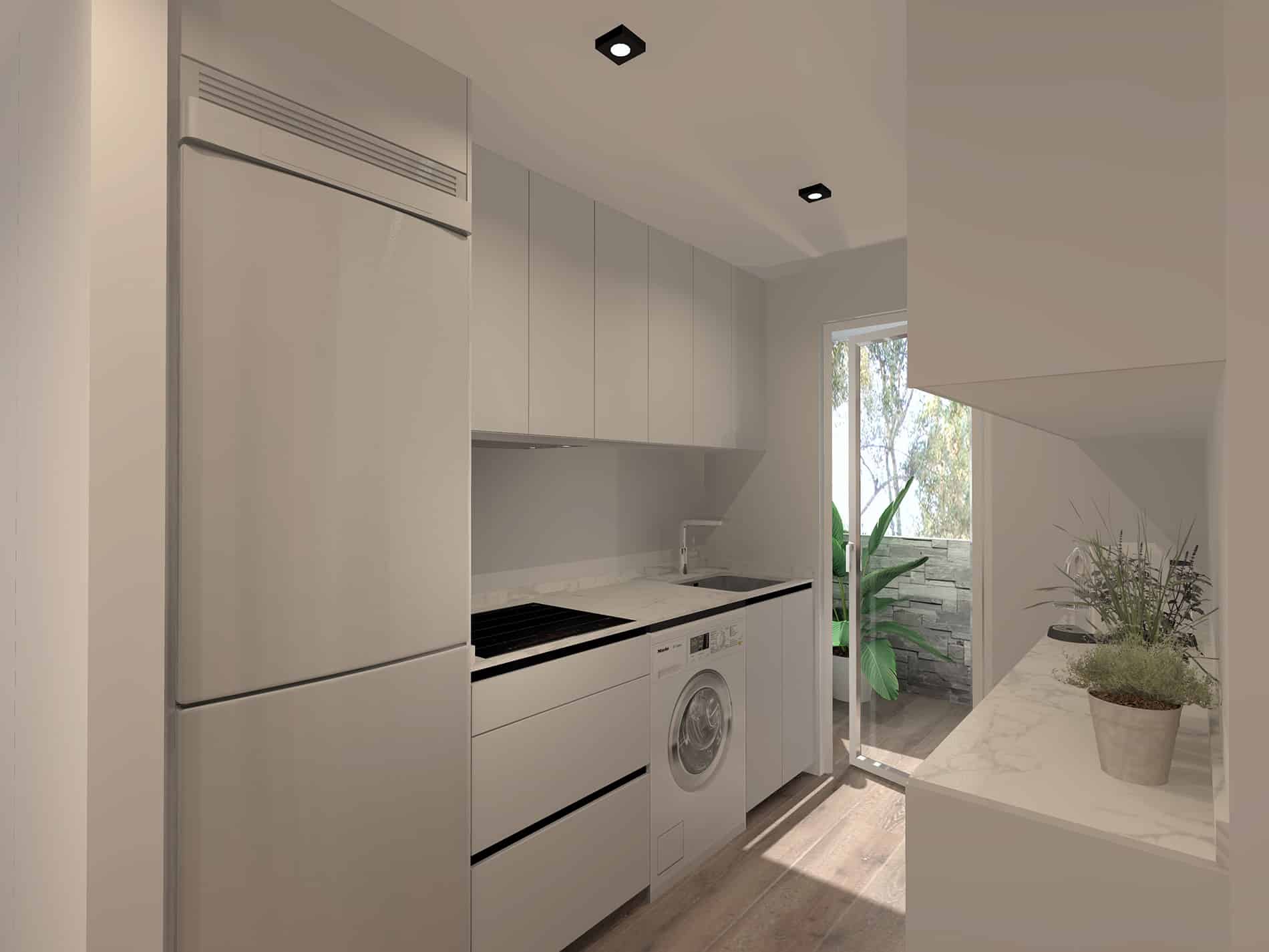 Con una cuidadosa planificación y selección de materiales, esta cocina demuestra que incluso en los espacios más reducidos es posible crear ambientes prácticos y elegantes, maximizando espacios sin sacrificar el estilo.