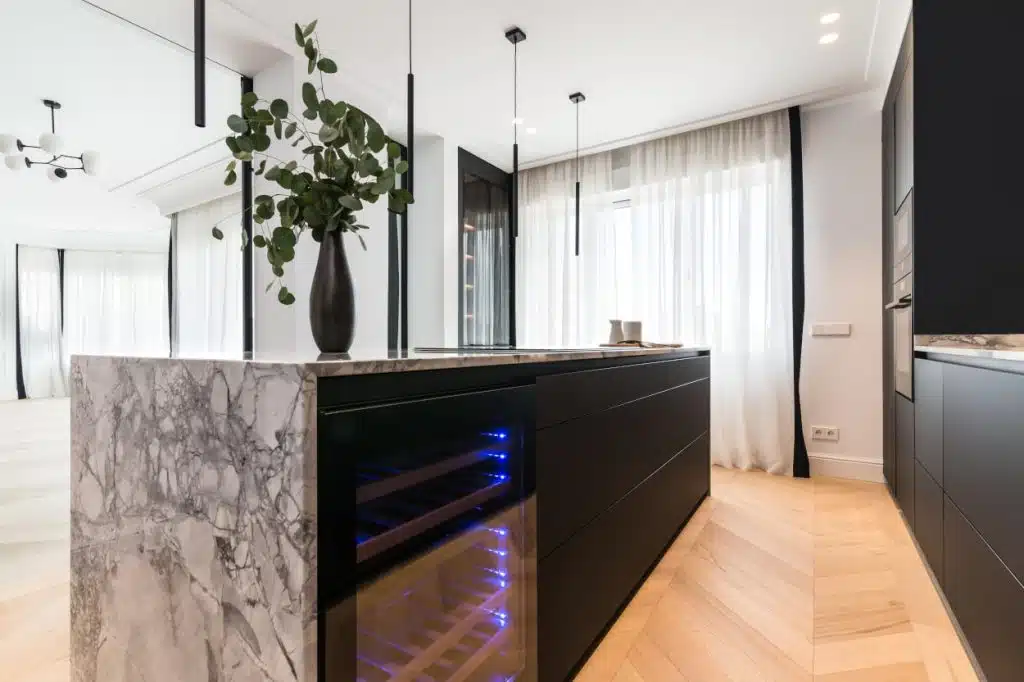El cuarzo es una de las opciones más populares para encimeras de cocina debido a su durabilidad y apariencia. Se trata de un material que combina cuarzo natural con resinas, lo que lo hace resistente a las manchas y los arañazos, lo que es fundamental en una cocina ya que es una zona muy sensible a este tipo de cosas. Además, está disponible en una amplia gama de colores y acabados.