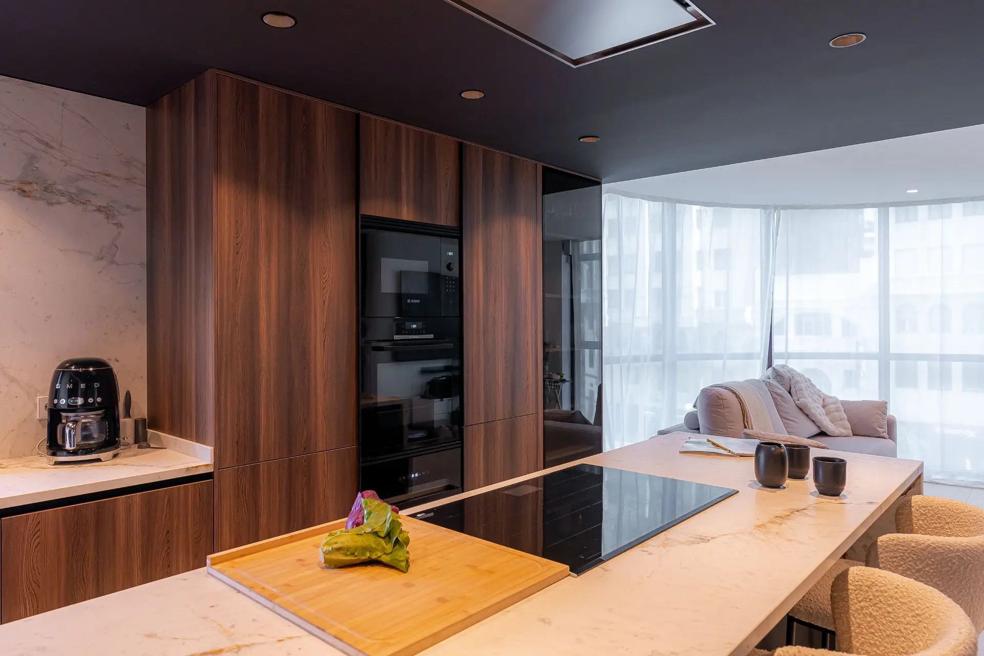 De esta manera todos los electrodomésticos pasan a ser invisibles y los muebles de cocina son los que cobran importancia al recoger toda la cocina quedando todo perfectamente unificado y protegido.